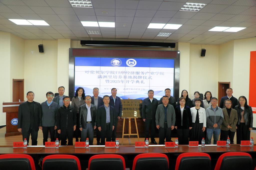 9月18日下午,我校口岸经济服务产业学院满洲里培养基地揭牌仪式暨2025年开学典礼在满洲里俄语职业学院举行。