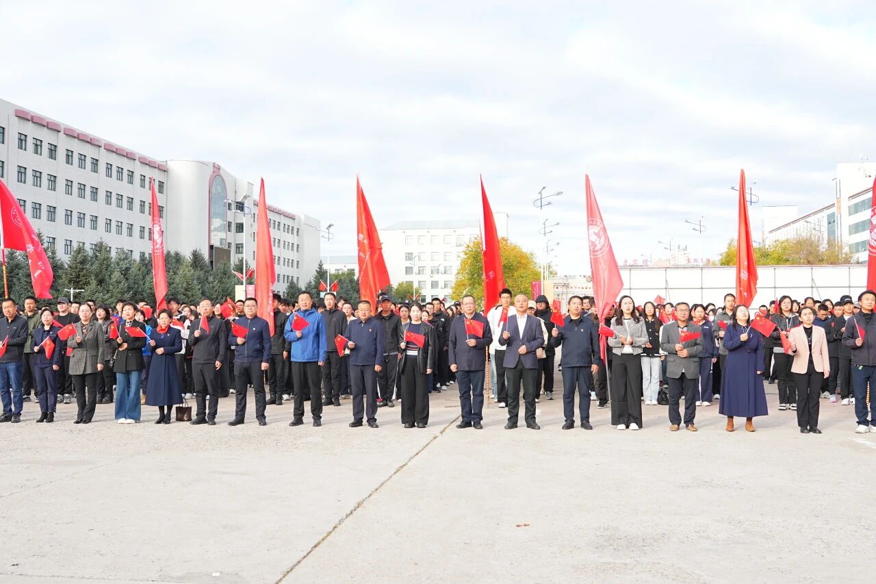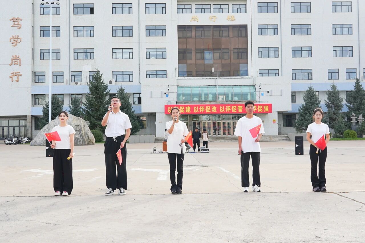 10月1日,上午8时,为庆祝中华人民共和国成立76周年,我校举行升旗仪式。校党委副书记、校长张玉柱,校党委委员、副校长李跃武、张桂芝,以及各职能部门负责人、各学院领导班子成员、师生代表齐聚尚行楼前广场,为祖国母亲献上最诚挚的祝福。升旗仪式由团委书记王晓芳主持。