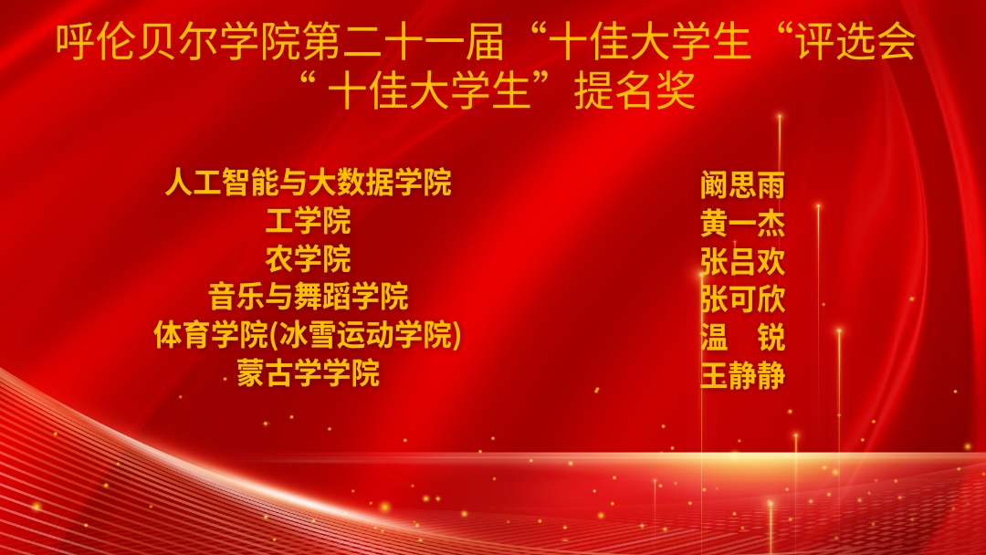 经评审,最终评定点点网页登录第二十一届“十佳大学生”10名、“十佳大学生”提名奖6名。