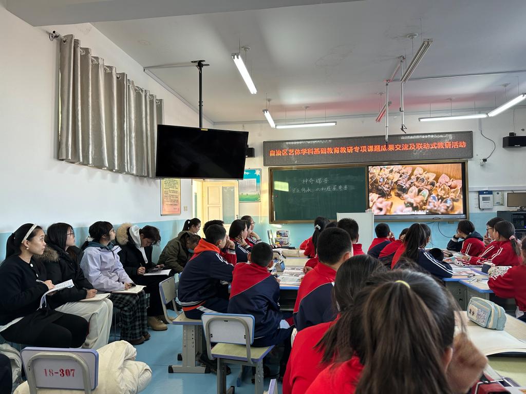 11月18日至21日,美术学院研究生课程《行业前沿讲座》依托“校地协同”模式,组织了一场实践教学活动。课程负责人何锡彭负责联络协调,学院金敏、桂丽两位教师带领7名美术与书法专业研究生,参与了呼伦贝尔市教育事业发展中心艺体卫教研室主办的自治区艺体学科教研专项课题成果交流及联动式教研活动,先后赴鄂温克中学、新桥小学及南开路中学,与一线师生展开深入交流。