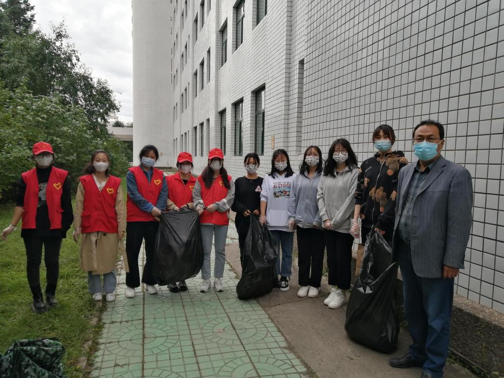 全体志愿者携手拾捡白色垃圾和烟头,为了给在校师生提供一个干净整洁的学习生活工作环境,不怕脏、不怕累,彰显了呼院人的舍己为人、甘于奉献的精神。
