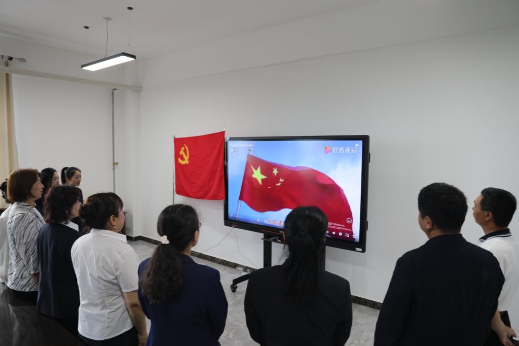 随着《没有共产党就没有新中国》《歌唱祖国》的旋律响起,大家心潮澎湃,演唱过程中激发了每位党员爱党爱国爱校的炽热情怀,党员教师们在歌声中,铭记中国共产党的初心使命,传承红色基因,坚定听党话、跟党走的信念。