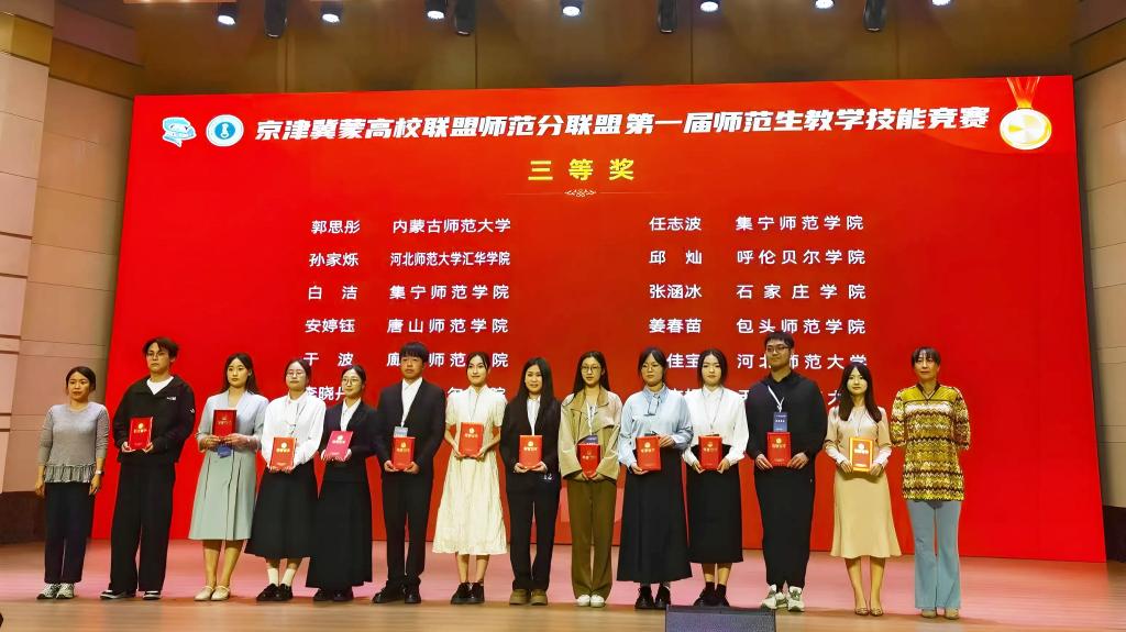 9月19日至21日,京津冀蒙高校联盟师范分联盟第一届师范生教学技能竞赛在内蒙古师范大学圆满落幕。本次竞赛汇聚来自京津冀蒙四地21所高等师范院校的166名优秀选手,通过多环节比拼展现师范生的专业素养、教学能力与职业风采。我校学子在竞赛中表现亮眼,斩获多项荣誉。为充分展现我校师范生培养成果,学校精心选拔并派出11名选手参加高中、初中和小学三个组别的角逐,涉及多学科领域。经过三天的激烈角逐,我校选手凭借扎实的学...