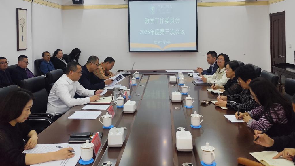 为进一步推动学校教育教学高质量发展,9月30日上午,我校教学工作委员会在逸夫楼419会议室召开2025年第三次会议,重点审议三个引企入校项目和成立三个中心相关事宜。校党委副书记、校长、校教学工作委员会主任张玉柱,校党委副书记张宏天,校党委委员、副校长张桂芝出席会议,学校教学工作委员会委员及教务处相关工作人员参加会议。会议由张玉柱主持。会上,张玉柱强调,本次审议通过的引企入校项目是学校深化产教融合、推进应...