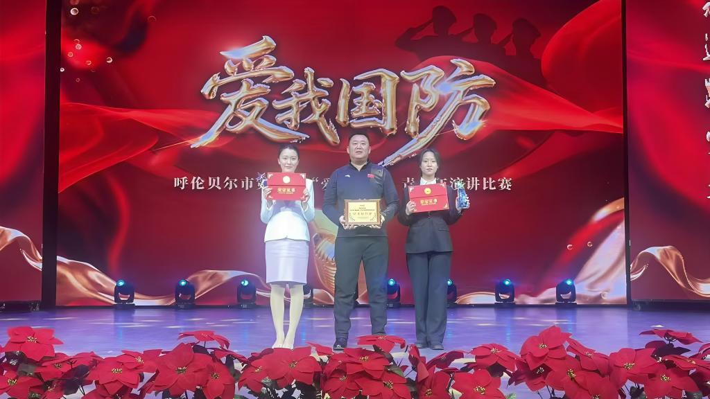 11月22日,呼伦贝尔市第三届“爱我国防”青少年全民国防教育演讲比赛在呼伦贝尔市乌兰牧骑宫圆满落幕。我校马克思主义学院韩诗娜、法学与经济管理学院杨林两位学子表现优异,凭借扎实功底与真挚家国情怀,荣获高校组并列冠军,学校获评优秀组织奖。比赛现场庄重热烈,来自全市各高校、中小学的参赛选手齐聚一堂,围绕“爱我国防”主题各展风采。我校学子杨林以《清澈的爱只为中国》为题,深情讲述喀喇昆仑戍边战士故事,用“青...